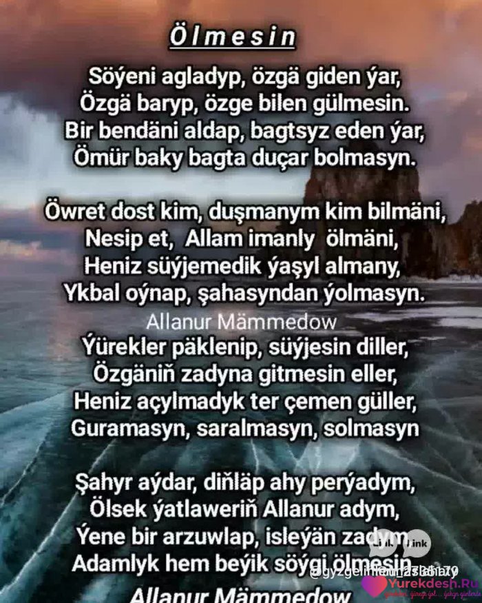 Tuweleme. Ay bul-a Nesilde cap bolandyr...Yaslygymyn baharyna gatnasmansynyz-la, agam. Yeke gitmeli boldum )...dowamy...