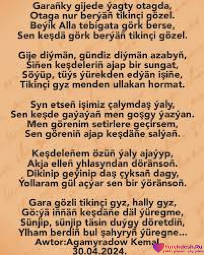 Ýürekdeş sözler!