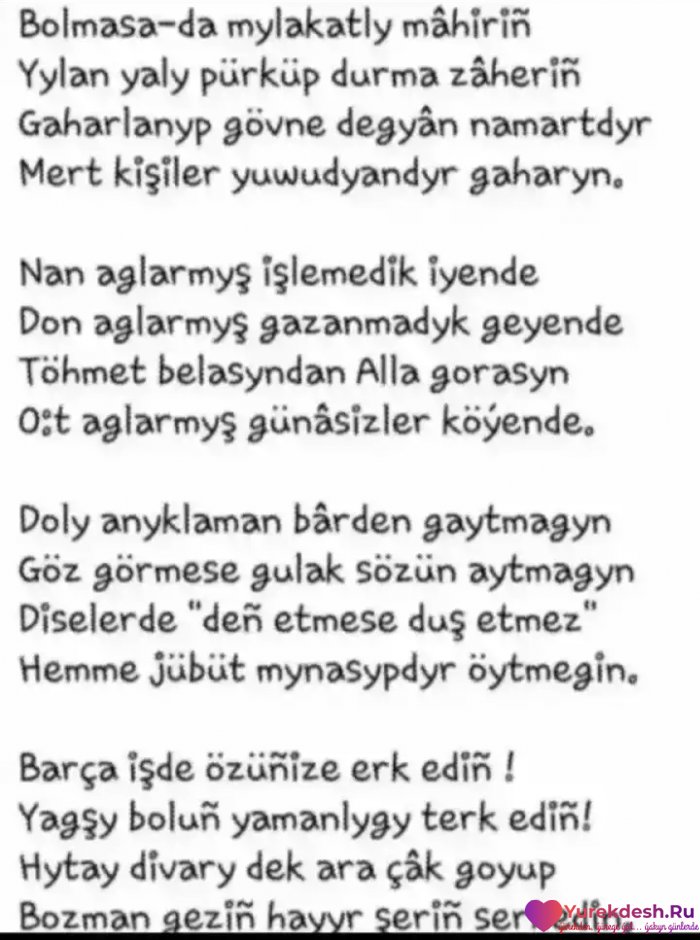 Ýürekdeş sözler!